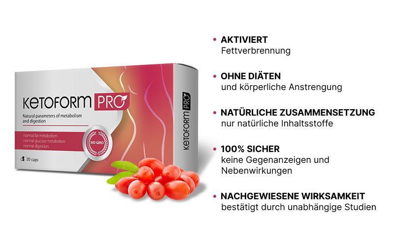 Ketoform PRO – Kapseln mit natürlicher Zusammensetzung, die eine effektive und sichere Gewichtsabnahme auf Basis der Ketogenese unterstützen.