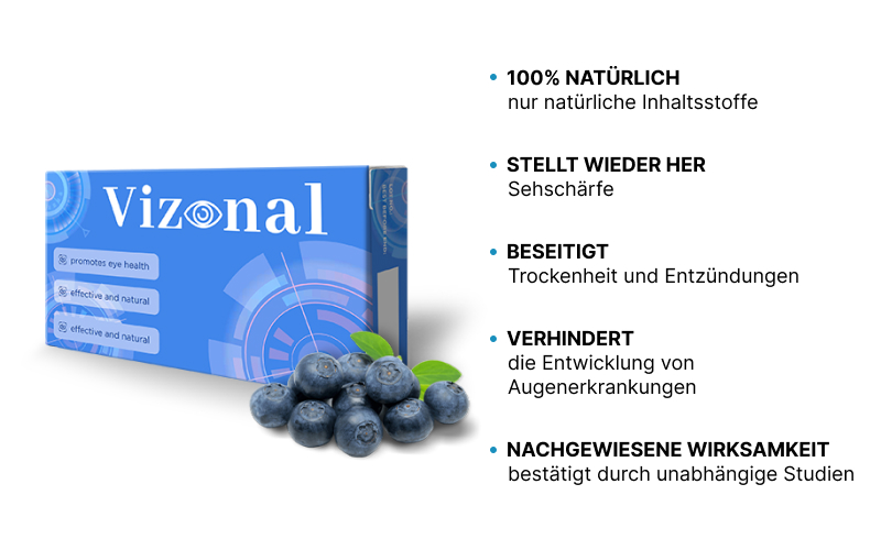Bei regelmäßiger Einnahme über einen Zeitraum von 40 Tagen hilft Vizonal nicht nur, das Sehvermögen zu verbessern, sondern schützt die Augen auch vor Umwelteinflüssen, Stress und Ermüdung. Es genügt, zweimal täglich nur eine Kapsel einzunehmen, um die Sehkraft zu verbessern und langfristig zu erhalten.